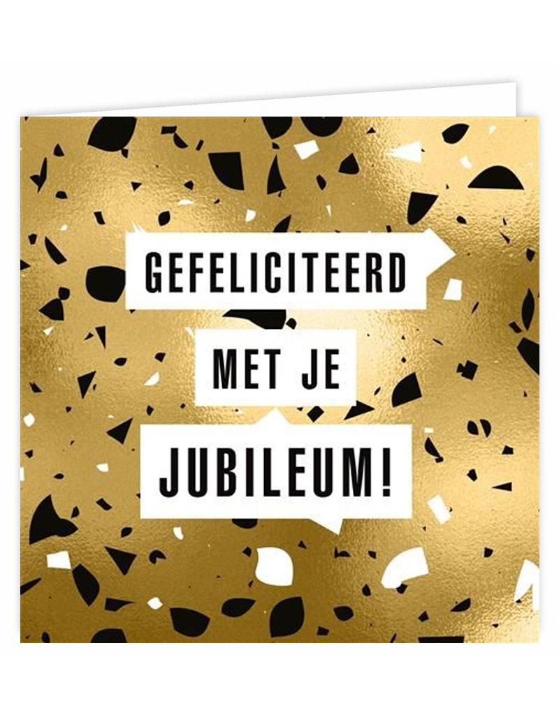 Tekst voorkant: Gefeliciteerd met je jubileum Tekst binnenzijde: Blanco Formaat: 12 x 12 cm Bijpassende envelop: Wit Verzendgewicht: 12 gram = 1 postzegel